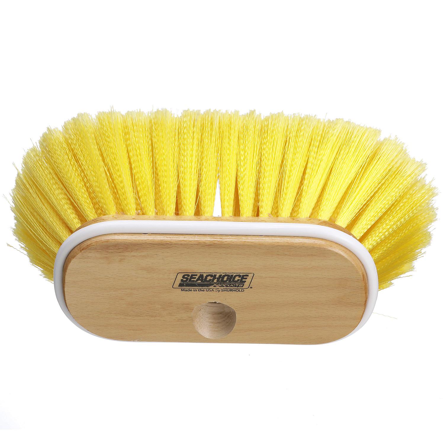 Suitable for textured and non-skid surfaces, the Seachoice 6-Inch Deck Brush With Threaded Hole is built to the highest quality standards. The flared, polystyrene bristles are set in a solid wood block, and the rubber wrap-around bumper prevents marking up surfaces. Seachoice is committed to delivering quality marine accessories and OEM replacement parts to satisfy fishing, boating and watersports enthusiasts worldwide. Seachoice is run for and by boaters, offering a wide-ranging product line while remaining affordable.