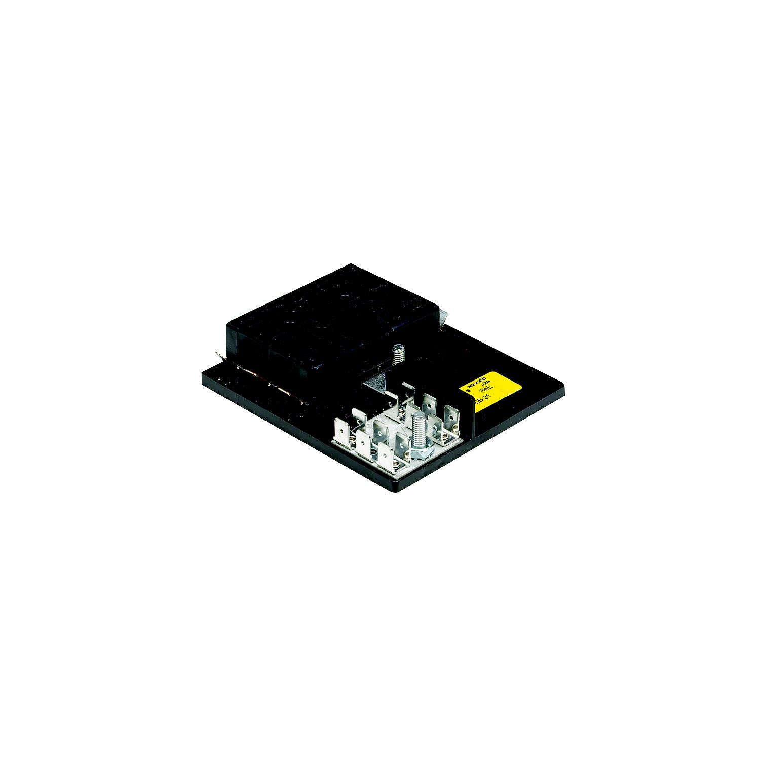 Heavy duty black plastic molded base with ground bar. 30A @ 12V DC. 25 amps per circuit, 100 max. 12-32V.