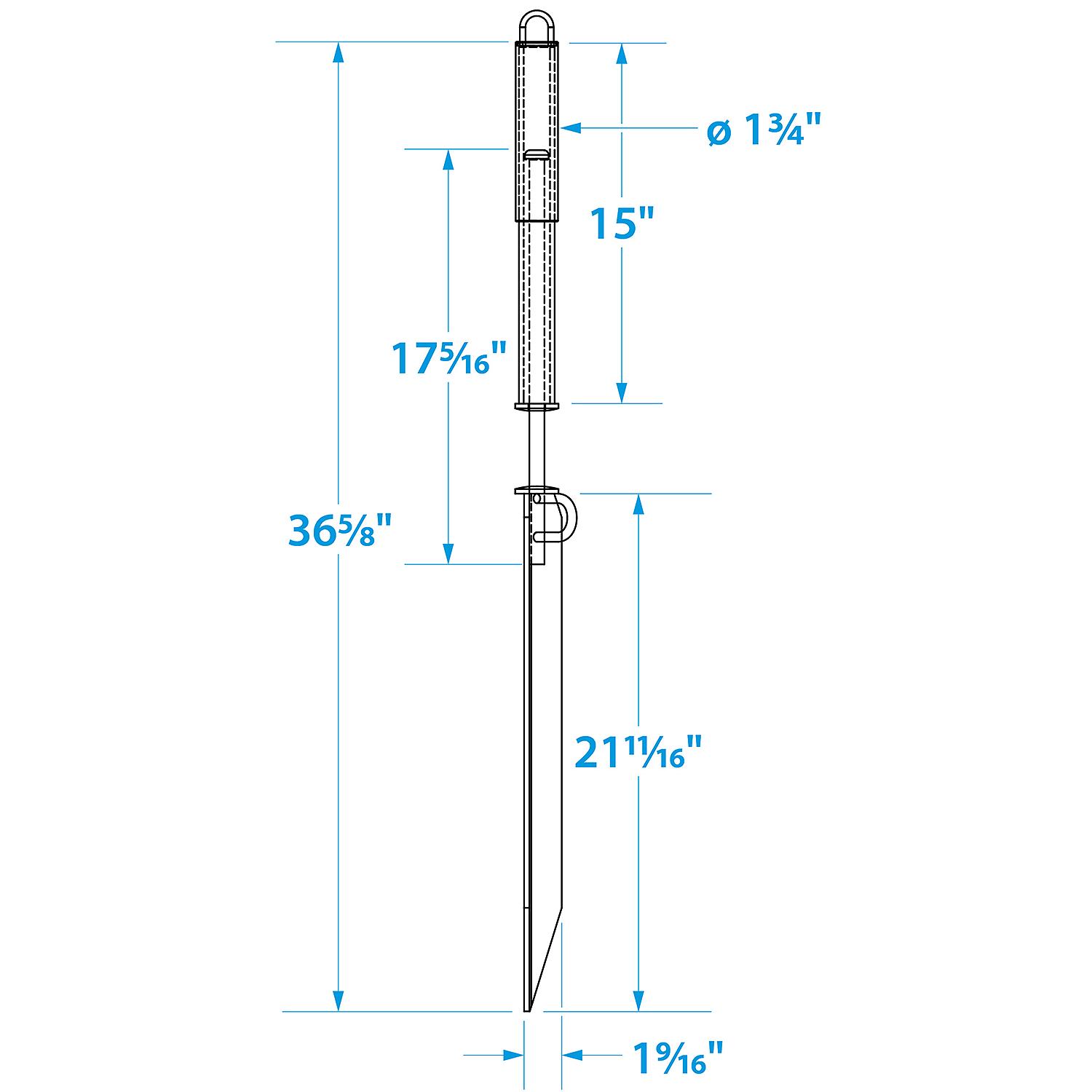 Ideal for securing you boat or PWC to shore. Self-driving hammer action. Galvanized with rubber coated handle for protection.