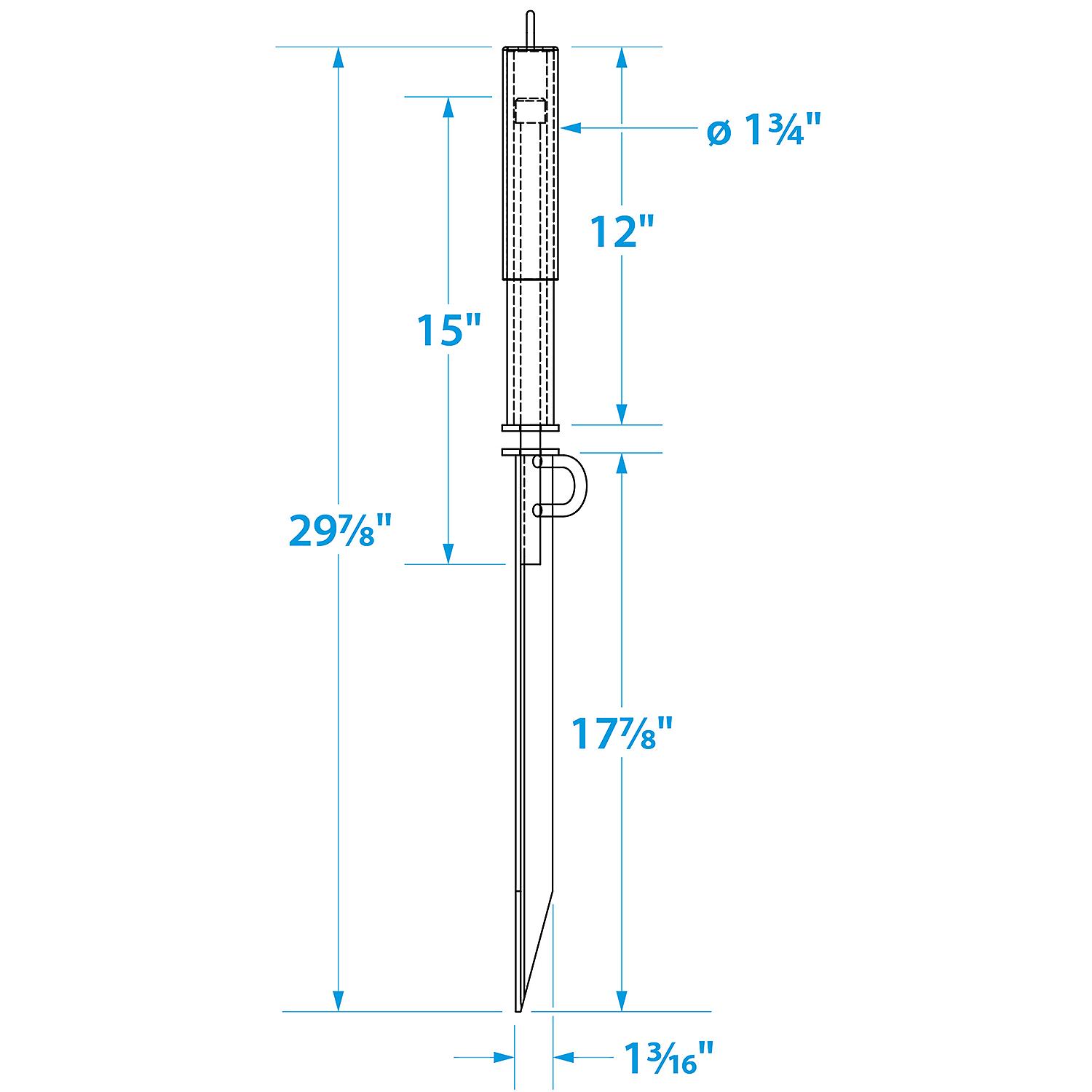 Ideal for securing you boat or PWC to shore. Self-driving hammer action. Galvanized with rubber coated handle for protection.