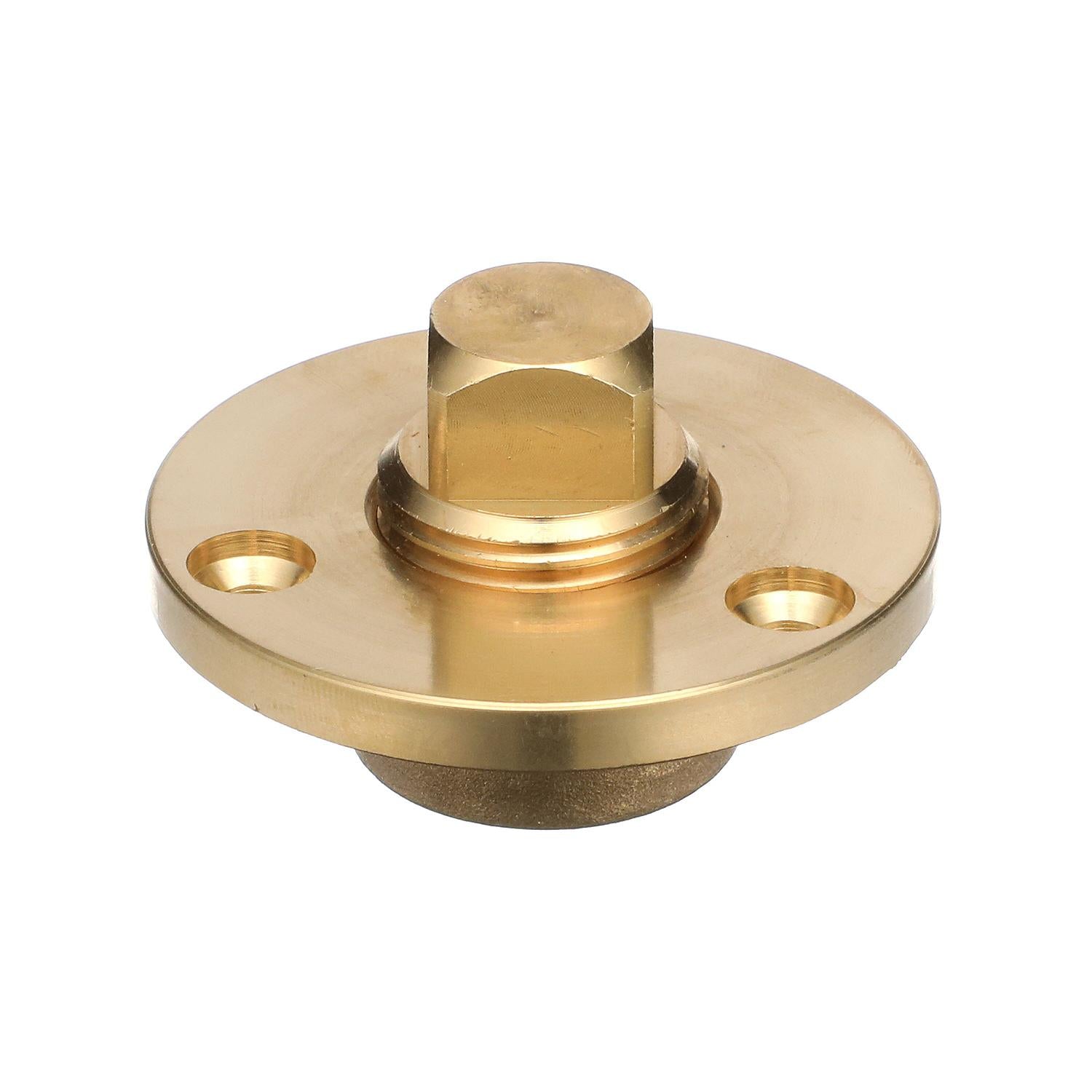 Cast bronze flange. 2" OD Fits 1/2" pipe. Mounts with #8 screws. Brass plug.