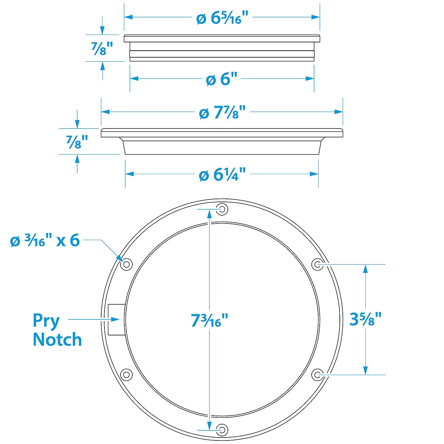 Easy to clean non-skid surface. Water tight O-ring seal. Acetone resistant polypropylene. Requires #8 fasteners.