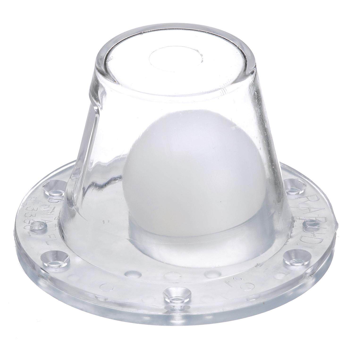 Automatically seals and drains self bailing decks. Made of polycarbonate material. Solid polyethylene ball and PVC seal mounts on transom above water line. 18271 and 18291 designed to retrofit Model 18261.