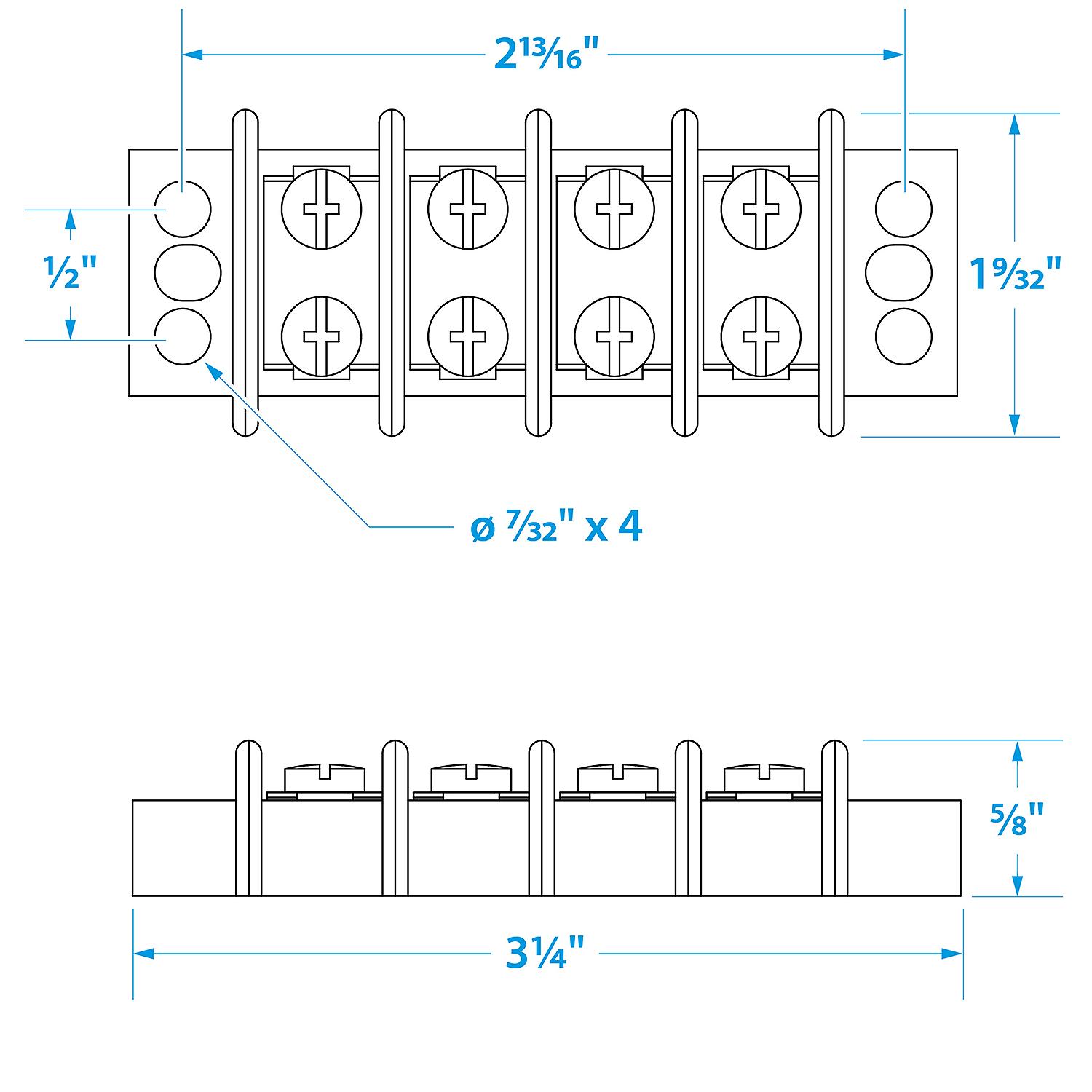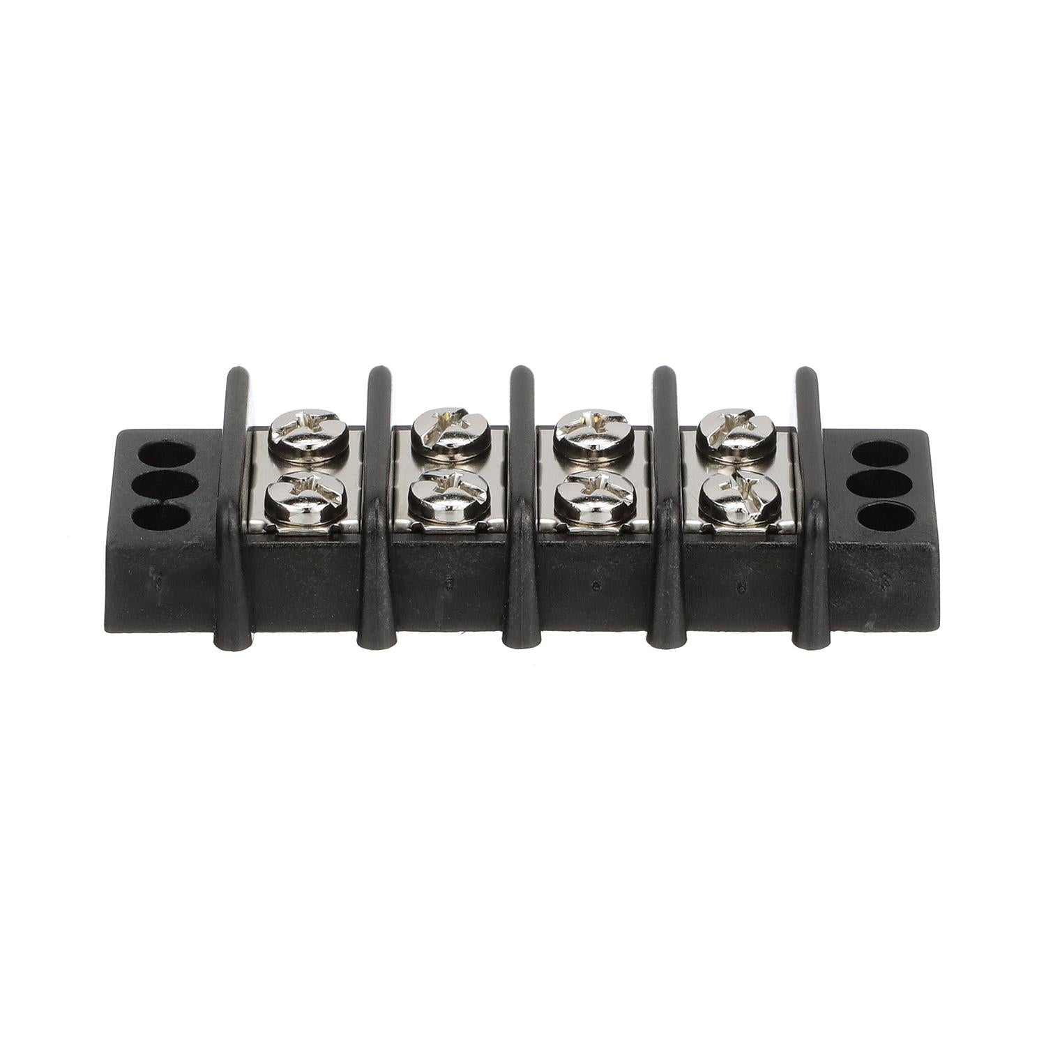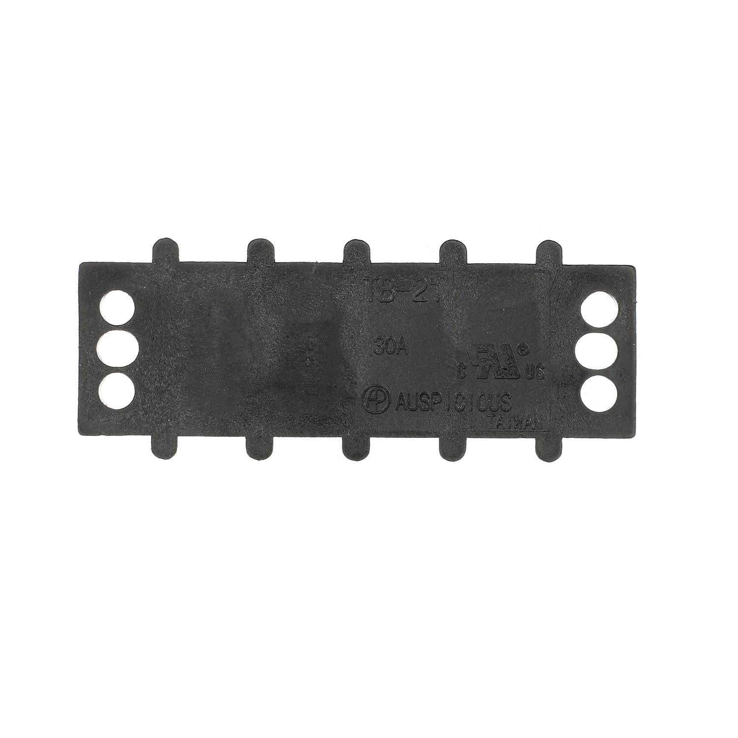 Corrosion resistant construction. Moisture repellent bakelite insulator base. Nickel plated brass terminals and #8-32 screws. Protective insulator barrier strips. Rated for 30A @12V.