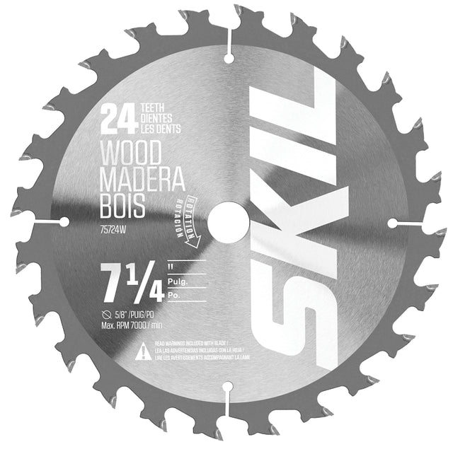 Skilsaw Circular Saw Blade, 7-1/4 in Dia, 0.1 in Thick, Cutting Edge Material: Carbide, Number of Teeth: 24, Arbor Size: 5/8 in, Cutting Depth: 7-1/4 in, Carbide