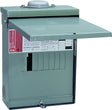 Outdoor main lug load center, 100 A, 6 space 12 circuit. NEMA type 3R enclosure with a rainproof cover. Copper bus bar, accommodates standard QO or QO tandem circuit breakers. ANSI certified and UL listed.