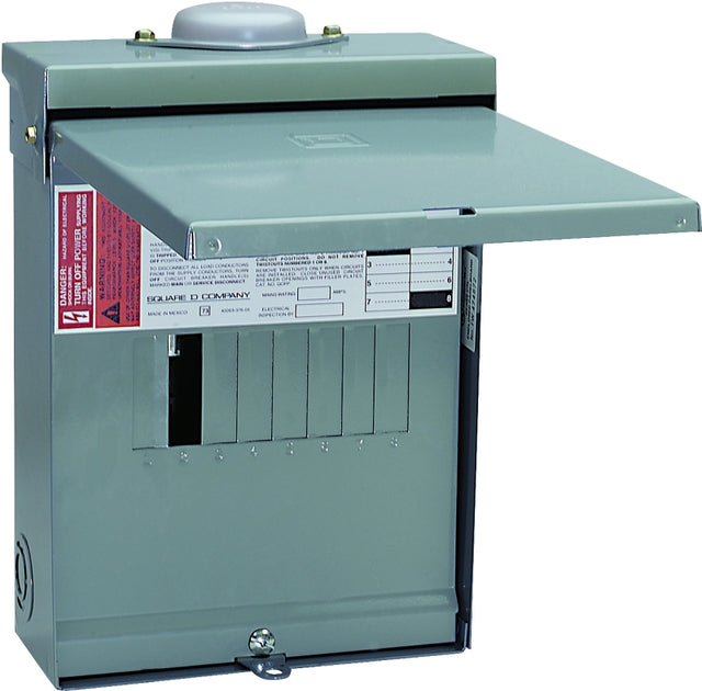 Square D QO QO612L100RBCP Load Center, 100 A, 6 -Space, 12 -Circuit, Main Lug, NEMA 3R Enclosure, Plug Mounting