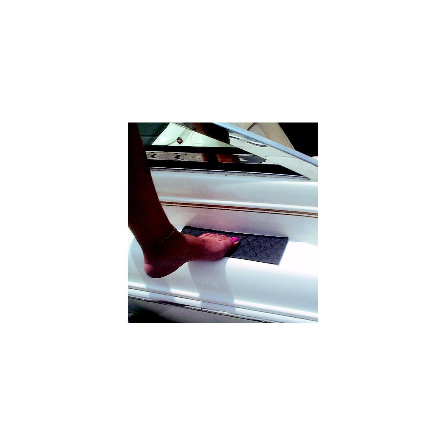 Step with comfort and safety, wet or dry. Use on swim platforms, stair rungs, transoms or anywhere you step and could slip. Padded.