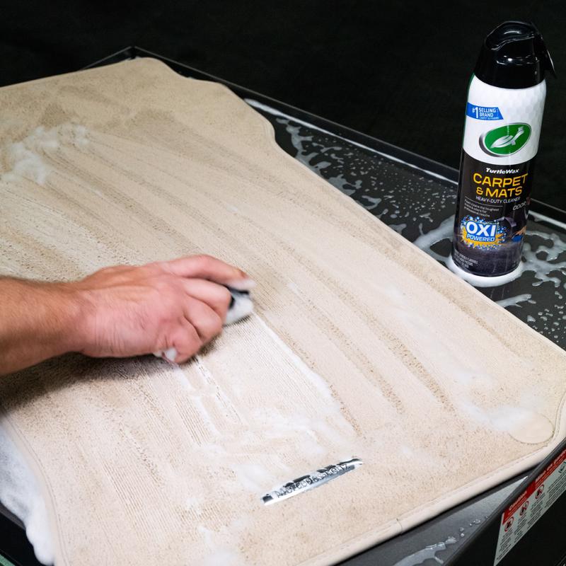 Power Out Carpet Cleaner with Odor-X and Oxy from Turtle Wax is a specially formulated cleaner that addresses the difficult cleaning problems of automobile carpeting. Soils such as oil and grease can easily be removed using Power Out. Carpet Cleaner with Odor-X and Oxy. The Turtle Wax Oxy additive is a proven stain-removing ingredient to help break up dirt and soiled and stained areas on all automotive carpets. The additive provides more stain and grease-cutting power to the foaming formula. Special Odor-X deodorizers help encapsulate and remove unpleasant odors.