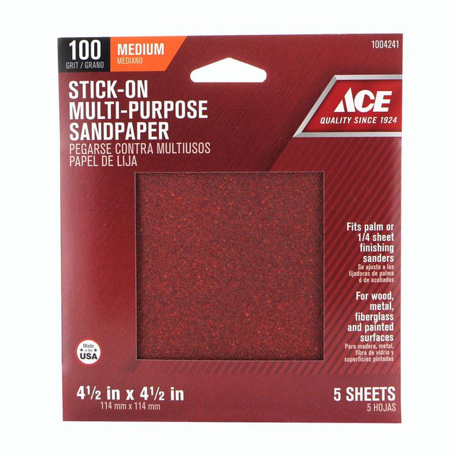 Ace 4.5 in. L X 4.5 in. W 100 Grit Aluminum Oxide Sandpaper 5 pk, Pack of 5