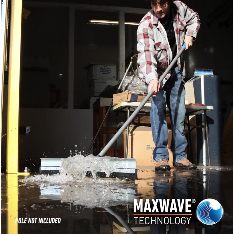 Galvanized steel straight floor squeegee has a curved hood with Maxwave Technology. Moves 50% more water, slush and debris with same effort than standard floor squeegees. Resists harsh chemicals, oils and acids and works best on smooth surfaces like asphalt and concrete floors.