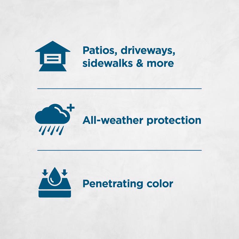 Transform your outdoor space into a beautiful retreat with Valspar Semi-Transparent Concrete stain. Highly versatile and easy to apply, the stain lets you achieve a natural look with one color or take it to the next level with multiple colors or patterns. The durable formula provides long-lasting decorative color while protecting from weather and household-chemical damage. Semi Transparent Concrete Stain imparts a low gloss; for added protection and a rich, glossy finish, apply Valspar Wet look high gloss sealer.