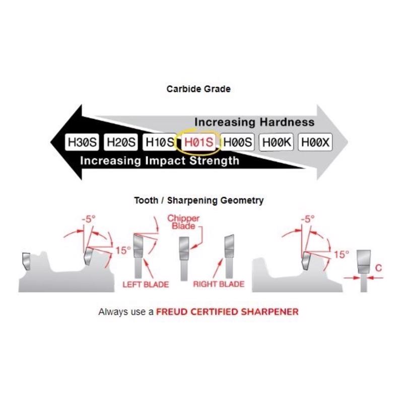 Negative Hook Angles make flat bottom grooves and virtually splinter-free cuts.