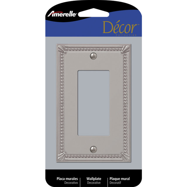 Amerelle Imperial Bead Brushed Nickel 1 gang Metal Decorator Wall Plate 1 pk