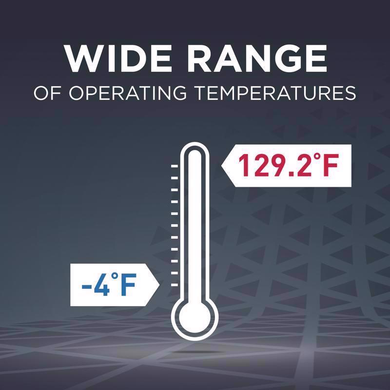 Operating temperatures from -4 degrees fahrenheit to 129.2 degrees fahrenheit