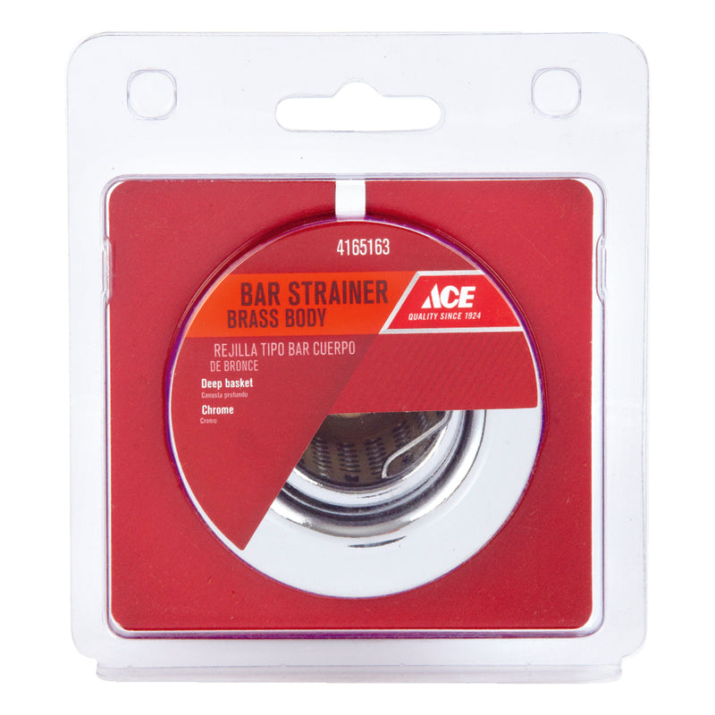 Ace 2-1/2 in. diameter Bar Sink Strainer assembly with a deep basket and a stainless steel finish. Features a chrome plated finish and includes all nuts and washers.
