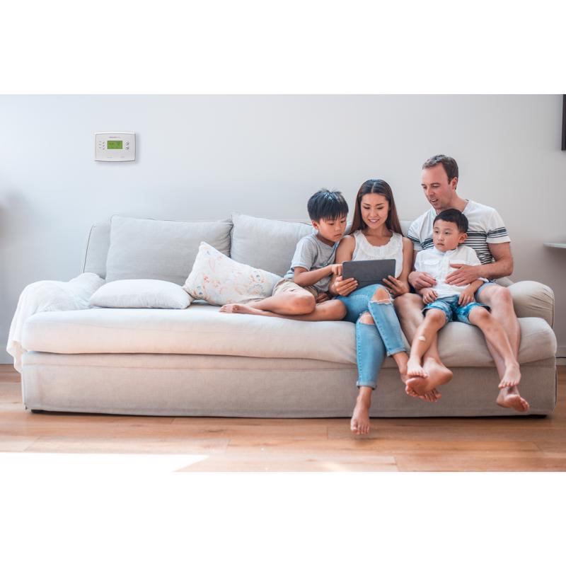 The Honeywell 5-2 Day Programmable Thermostat with Backlight has a simple interface and offers separate weekday and weekend programming. It continually adjusts the pre-heating or cooling of your home so you are comfortable when you wake up, come home or at any other time you prefer.
