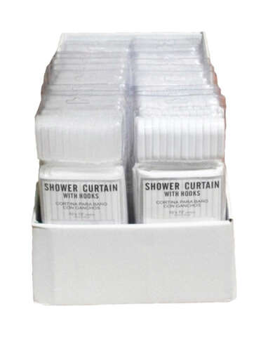 J & M Home Fashions 72 in. H X 70 in. W White or Clear Stripes Shower Curtain Plastic is backordered and will ship as soon as it is back in stock.