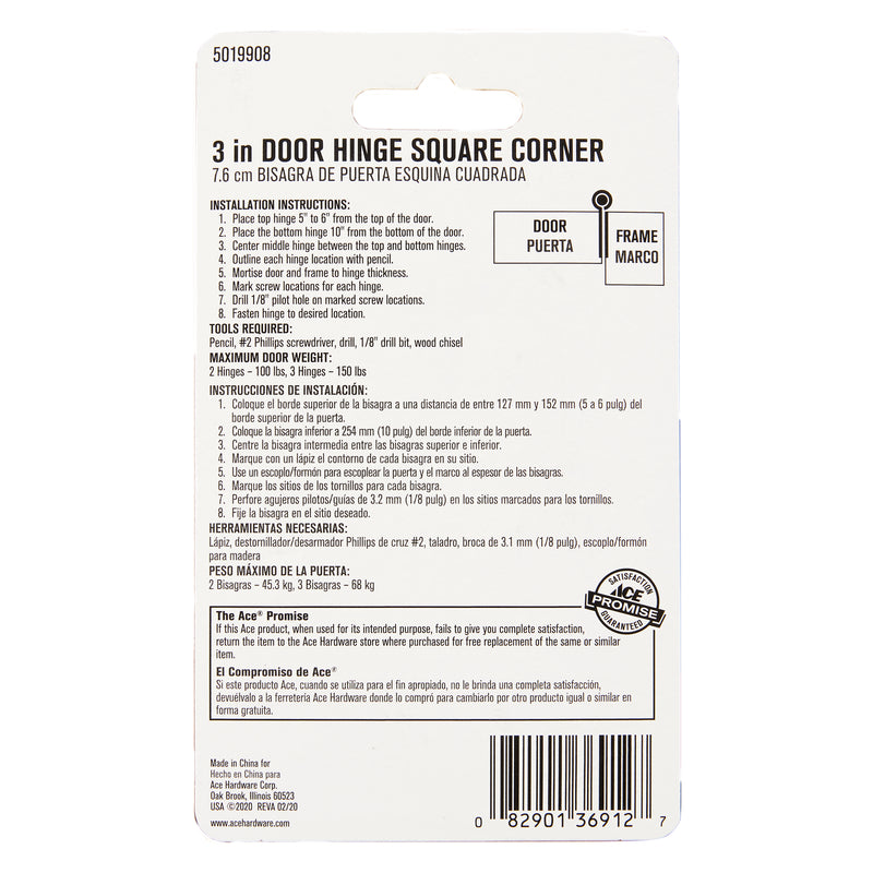 Ace residential hinges are a great choice for residential, commercial, window, furniture and a variety of other applications. 1 PACK