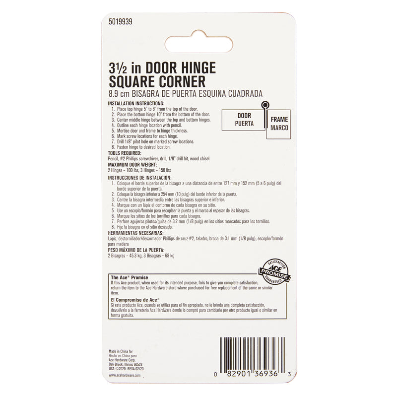 Ace residential hinges are a great choice for residential, commercial, window, furniture and a variety of other applications. 1 PACK
