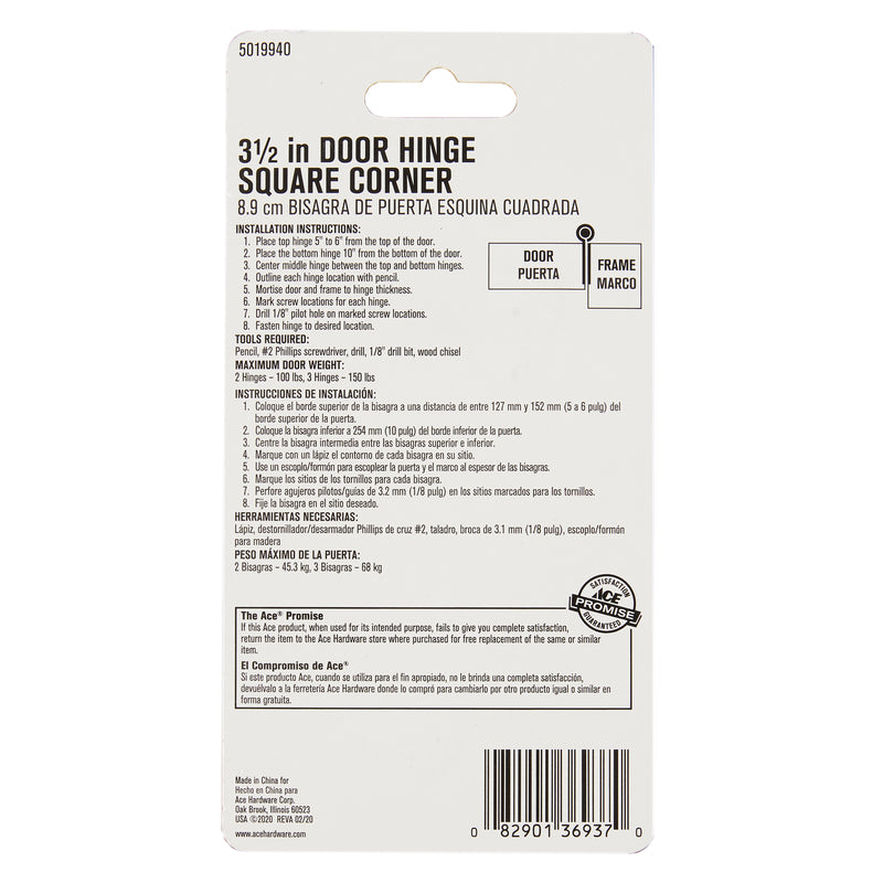 Ace 3-1/2 in. L Satin Brass Residential Door Hinge 1 pk