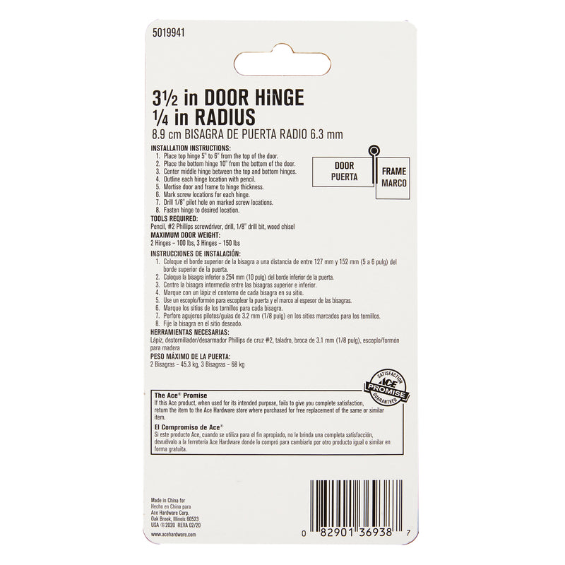 Ace 3-1/2 in. L Chrome Residential Door Hinge 1 pk