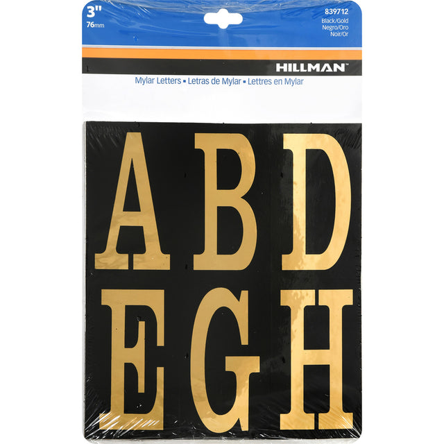 HILLMAN 3 in. Reflective Gold Vinyl Self-Adhesive Letter Set A-Z 51 pc, Pack of 5