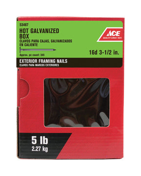 Ace 16D 3-1/2 in. Box Hot-Dipped Galvanized Steel Nail Flat Head 5 lb