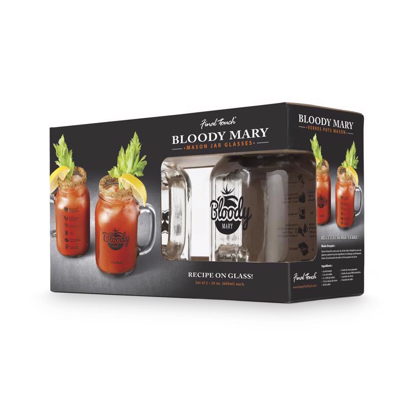 Serve the ultimate Bloody Mary with this set. Simply add ice and ingredients to each of the 4 glasses provided. Just follow the recipe printed directly on the back of each glass.