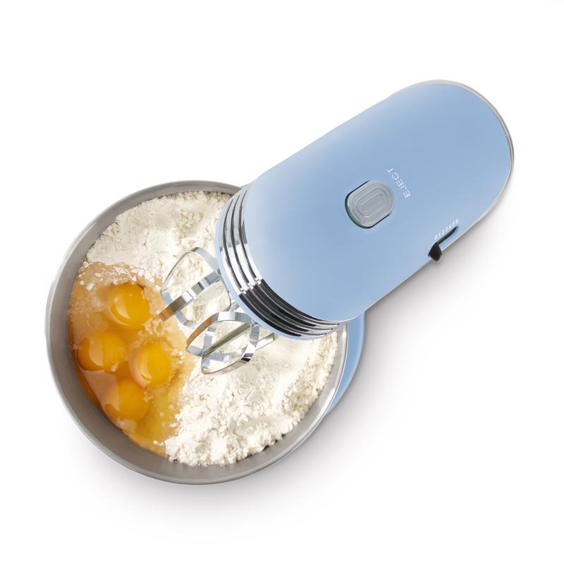 Mixing bowl and beaters are removable for easy cleaning