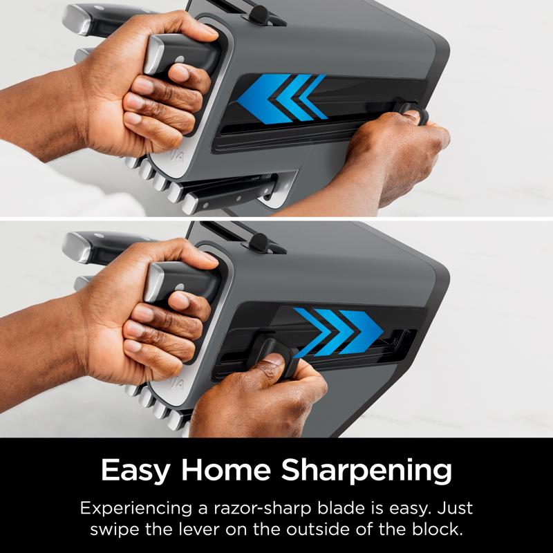 Easy, foolproof sharpening ensures you'll never experience the frustration of a dull knife again, all you do is swipe the lever on the outside of the block