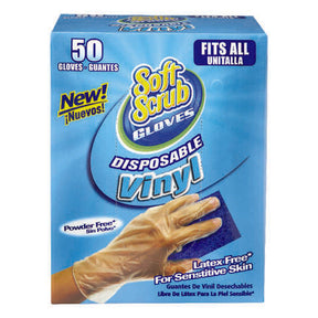 Soft Scrub Vinyl Disposable Gloves One Size Fits Most Clear Powder Free 50 pk