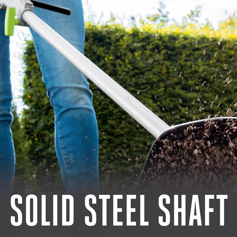 The EGO cultivator attachment is a great addition to the EGO Power+ Multi-Head System. The heavy-duty steel tines are adjustable from 8 to 9.5 in. This allows for easy tilling between shrubs, bushes, trees and flowers. A variable speed trigger allows you to power through the hard ground or dial it back for the softer soil.