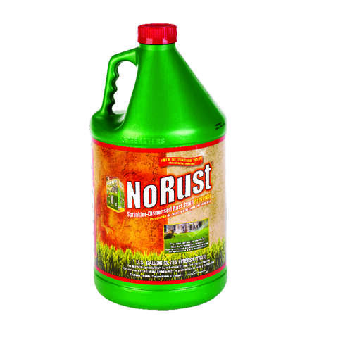 No Rust automatically prevents sprinkler rust stains from forming. If you have well water and you use your sprinkler system you probably have rust stains on your walls, walks, shrubs, lawn furniture, fences and any other surface in the sprinkler’s path. Use No Rust in your Sprinklerite tank to prevent rust stains from forming. It works automatically every time you sprinkle. Use goof off rust stain remover to remove stains currently on walls and other surfaces