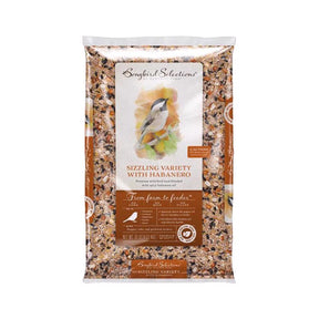 Songbird Selections Sizzling Variety with Habanero is a premium wild bird food with spicy habanero oil that birds love and squirrels detest. The blend contains vitamins and minerals to promote a healthy reproductive system while having no corn, milo or fillers. Songbird Selections Sizzling Variety is the ideal blend for chickadees, cardinals, nuthatches, finches and juncos.
