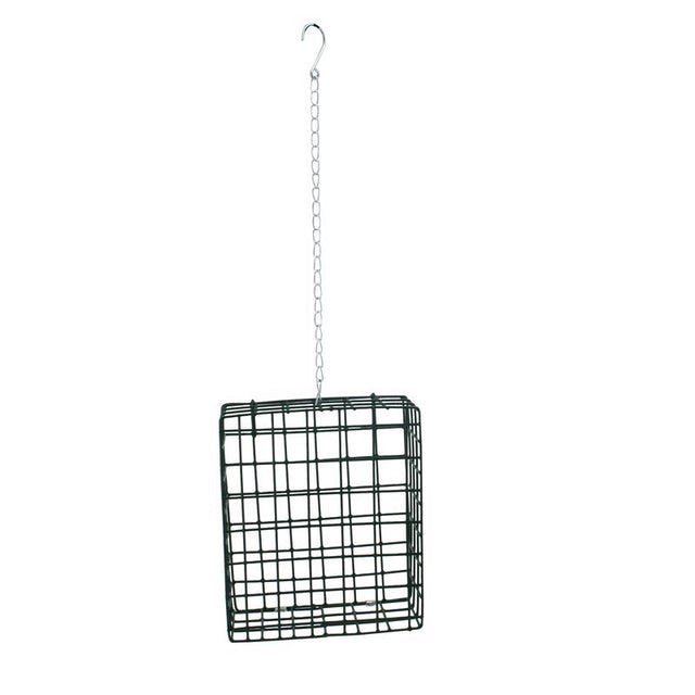 Suet cage feeder brings a variety of feeding options to your songbirds and will have your birds performing acrobatics while feeding. Birds cling to a sturdy wire cage that withstands rigors of daily use. Fully assembled, included metal hook extends through the roof for easy placement on a tree branch or outdoor supports. The latch makes for easy filling of suet, seed blocks, fruit or bird nesting material. Suet cages can also be used to hold seed and nut cakes.