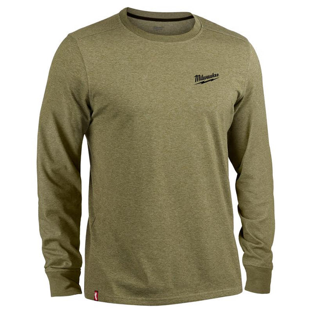 Milwaukee M Long Sleeve Men's Crew Neck Green Hybrid Work Tee Shirt