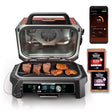 The Ninja woodfire pro outdoor grill and smoker with built in thermometer enables you to master grill, BBQ smoke, and air fry with 100 percent authentic woodfire flavors. Powered by electricity and flavored by real wood pellets, woodfire technology gives you the ability to easily create rich, woodfire flavors you can see and taste. With a built in thermometer, enjoy the cookout while your food cooks to perfection.