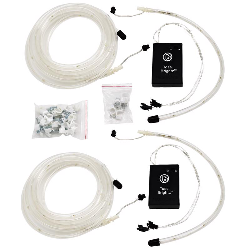 The game keeps going when the sun goes down. Our LED lighting kit for bean bag game boards provides everything you need to light up both boards. Each battery pack plus on/off switch easily attaches under the board. And the lights are edge-mounted so game board function stays unobstructed.