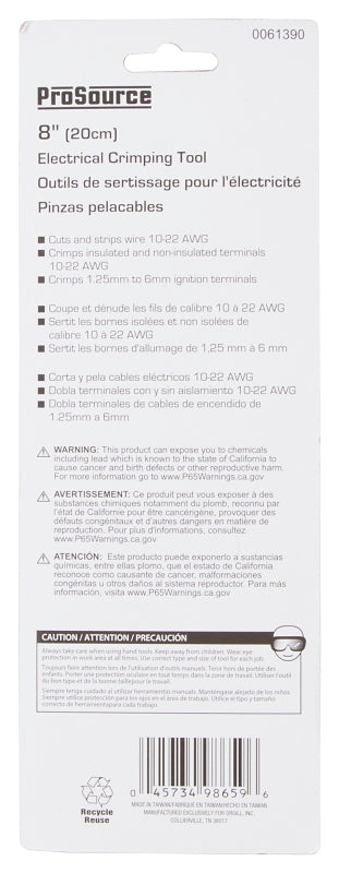 ProSource JL-SST-401183L Cable Crimper, 10 to 22 AWG Wire, 10 to 22 AWG Stripping, 10 to 22 AWG Cutting Capacity