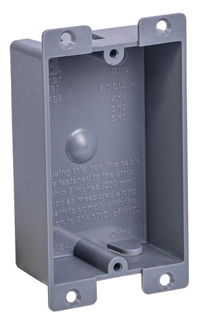 Gardner Bender BOX-RS8 Switch/Outlet Box, Shallow Outlet, 1-Gang, PVC, Gray, In-Wall Mounting
