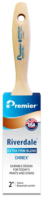 Premier Riverdale Paint Brush, Beavertail Varnish Brush, 2-11/16 in Bristle Length, Chinex Bristle, Stainless Steel Ferrule, Hardwood Handle, 2 in Width, 9/16 in Thickness