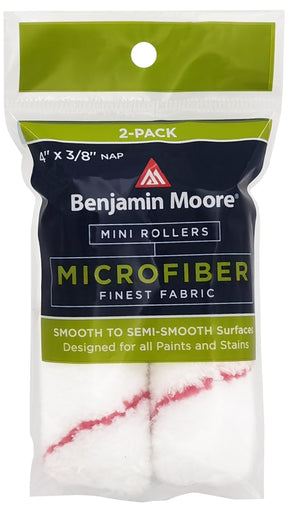 Benjamin Moore Mini Roller Cover, 3/8 in Thick Nap, 4 in L, Microfiber Cover, Surface Type: Smooth to Semi-Smooth, Paint Type: All Paints, Stains