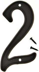 Raised script numbers. Durable, weatherproof plastic. Mounting nails included.