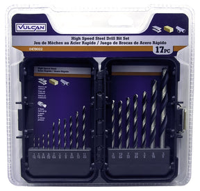 Vulcan 871140OR Plastic Case Drill Bit Set, 17-Piece, High-Speed Steel, Black Oxide/Polished