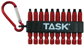 Includes two-piece, industrial-grade, hardened tool steel tips and #Robertson Carabiner clip. Red color.