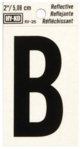 Hy-Ko RV-25/B Reflective Letter, 1-1/2 in W x 3 in H Dimensions, Character: B, 2 in H Character, Black Character, Vinyl, Pack of 10