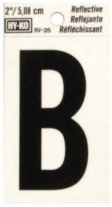 Hy-Ko RV-25/B Reflective Letter, 1-1/2 in W x 3 in H Dimensions, Character: B, 2 in H Character, Black Character, Vinyl, Pack of 10 is backordered and will ship as soon as it is back in stock.