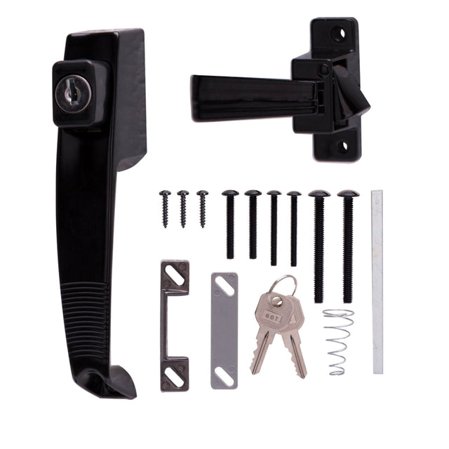 This Rectangular Push Button Door Latch has a resilient strike with anti-locking features. It is a popular style for out-swinging wood or metal screen or storm doors.