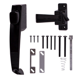 This Rectangular Push Button Door Latch has resilient strike anti-locking features. It is a popular style for out-swinging wood or metal screen or storm doors.